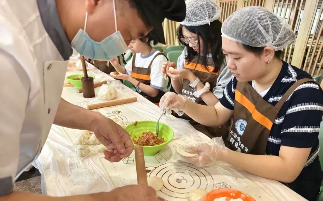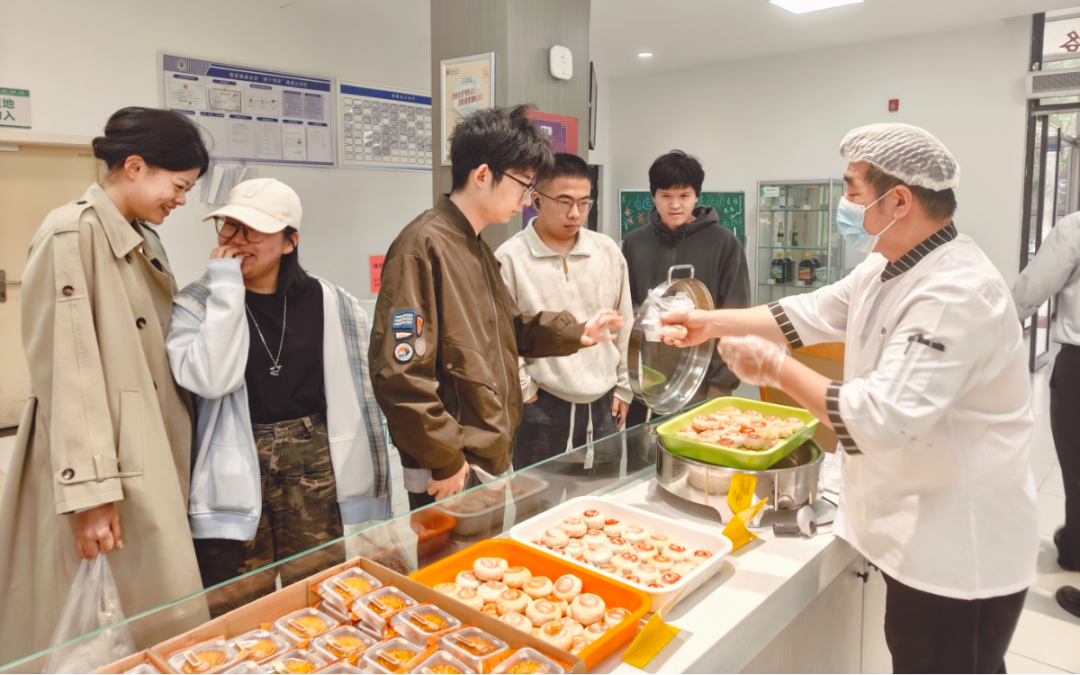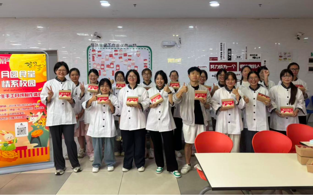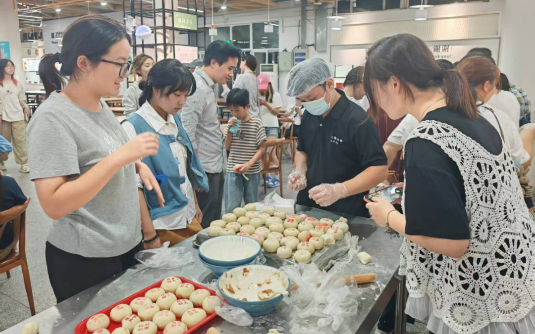 活动现场,大家欢聚一堂,满满的都是欢声笑语,一片祥和。在食堂师傅们的带领下,大家围在一起揉面团、填馅料、包坯子、上炉烘,手法稍显生疏,心中却默念一百遍。最终,在师傅们细心指导下,一个个带着专属印记的月饼新鲜出炉。