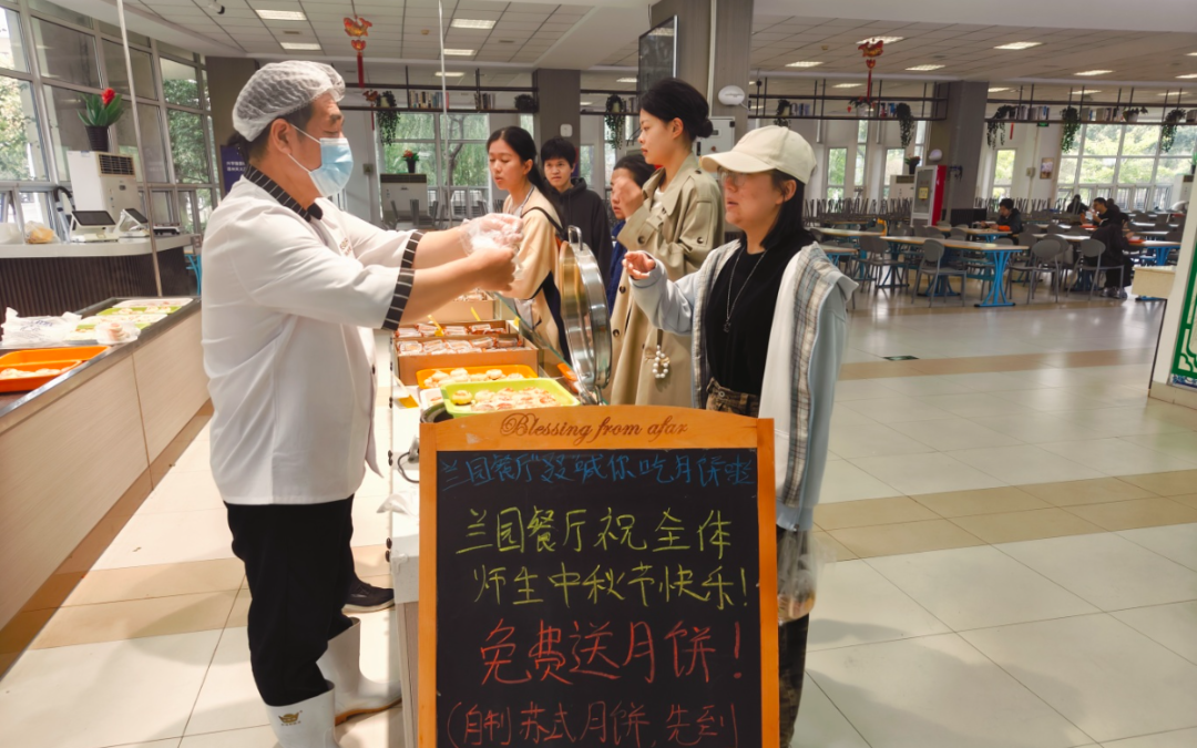 AG尊时凯龙人生就餐饮还专门为留校师生送祝福、赠月饼,不少同学笑着说:“在食堂收到中秋礼,太暖心了!”